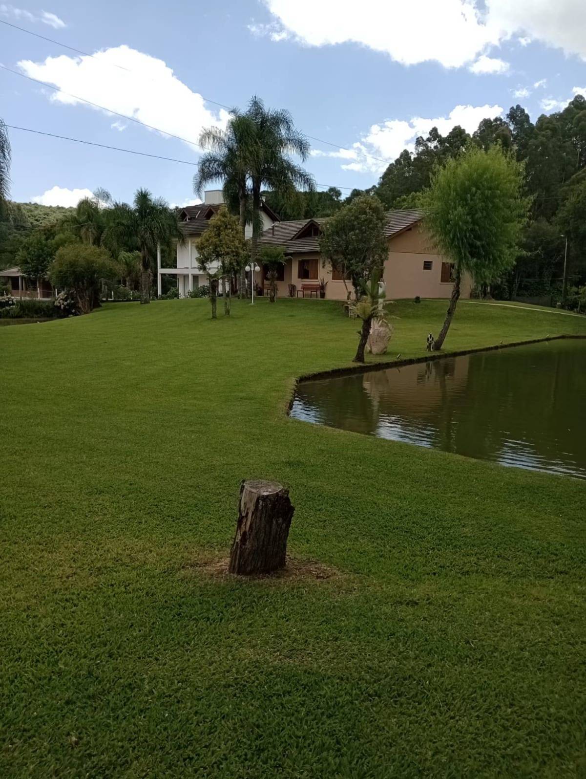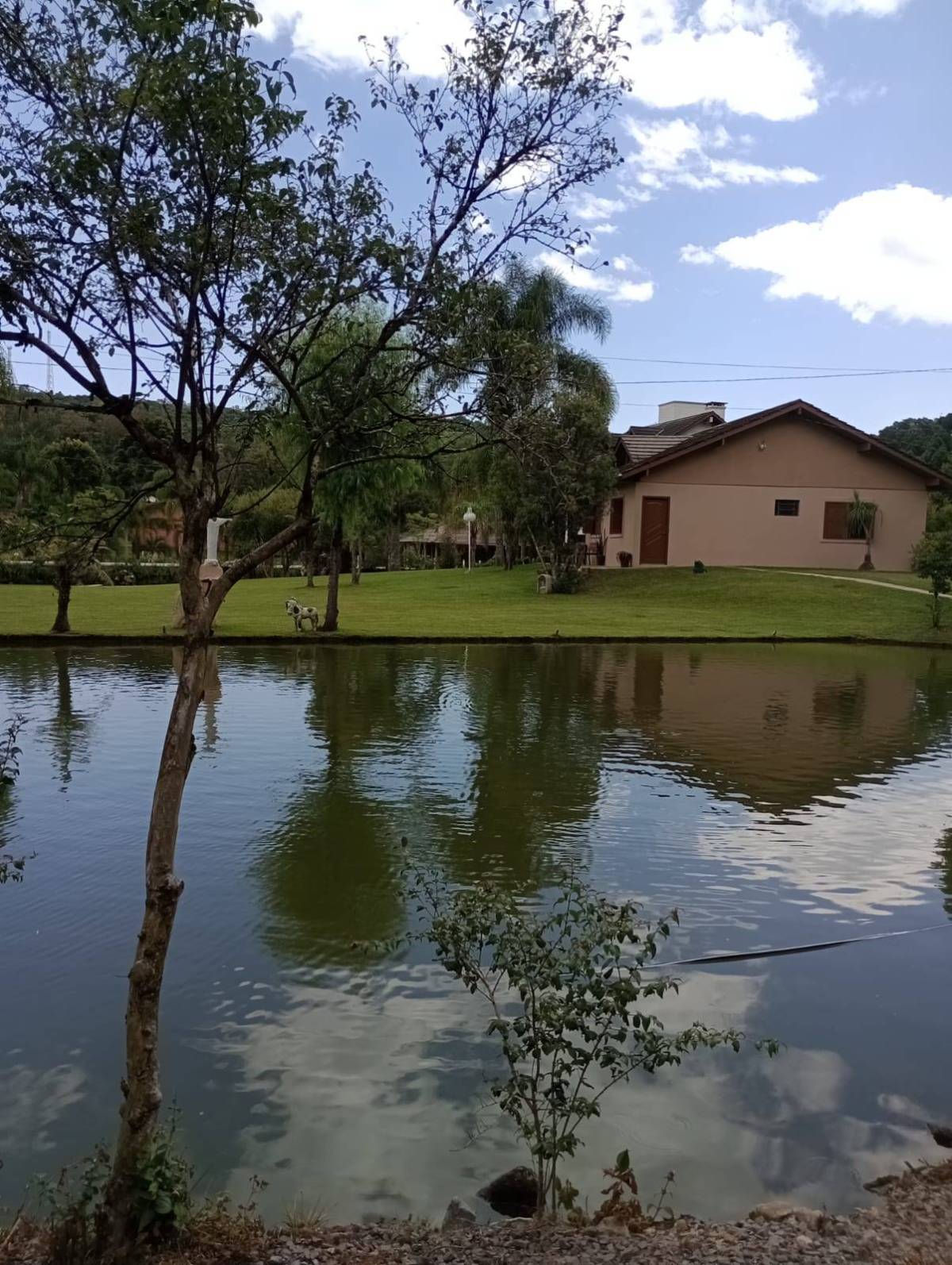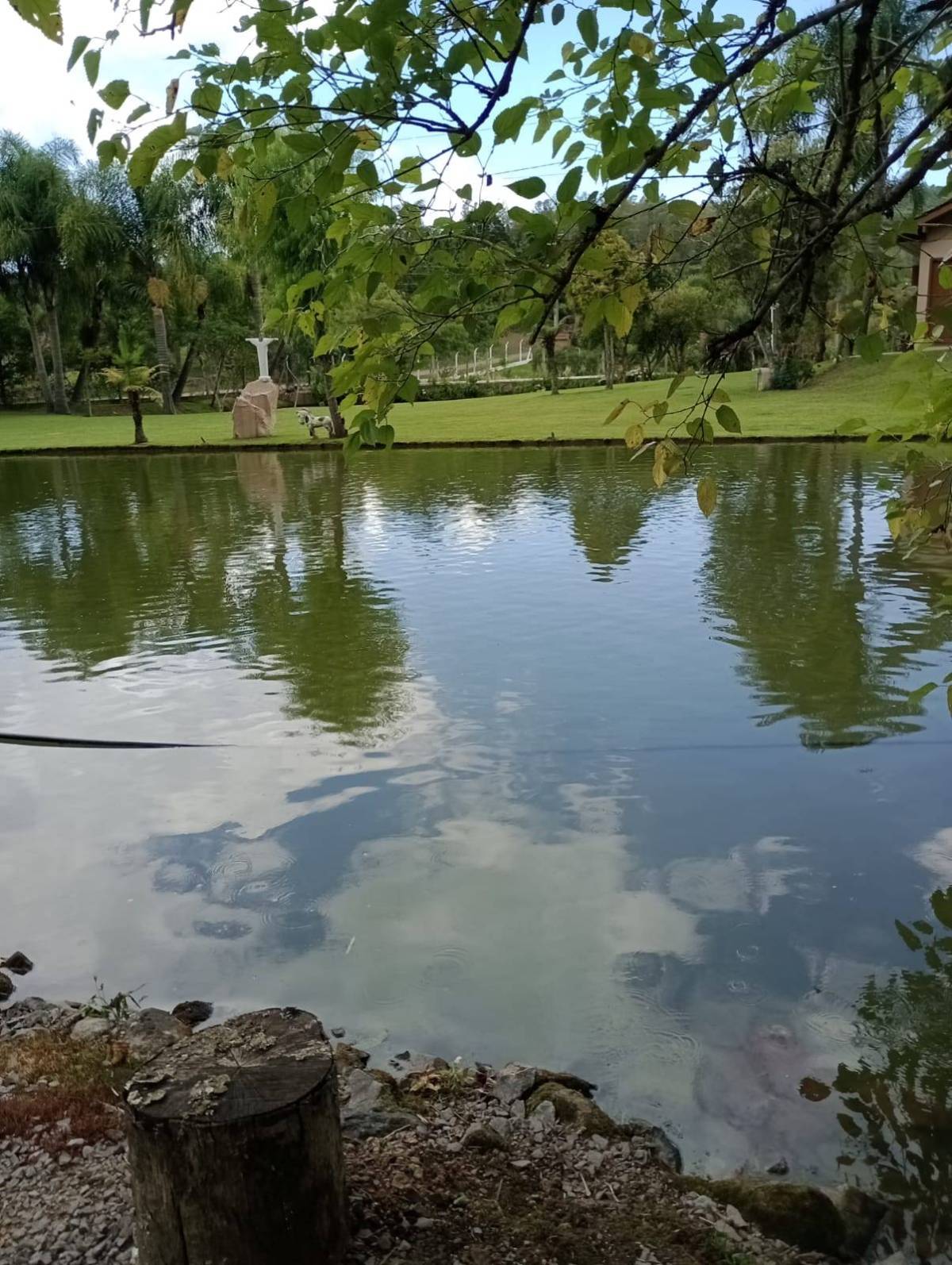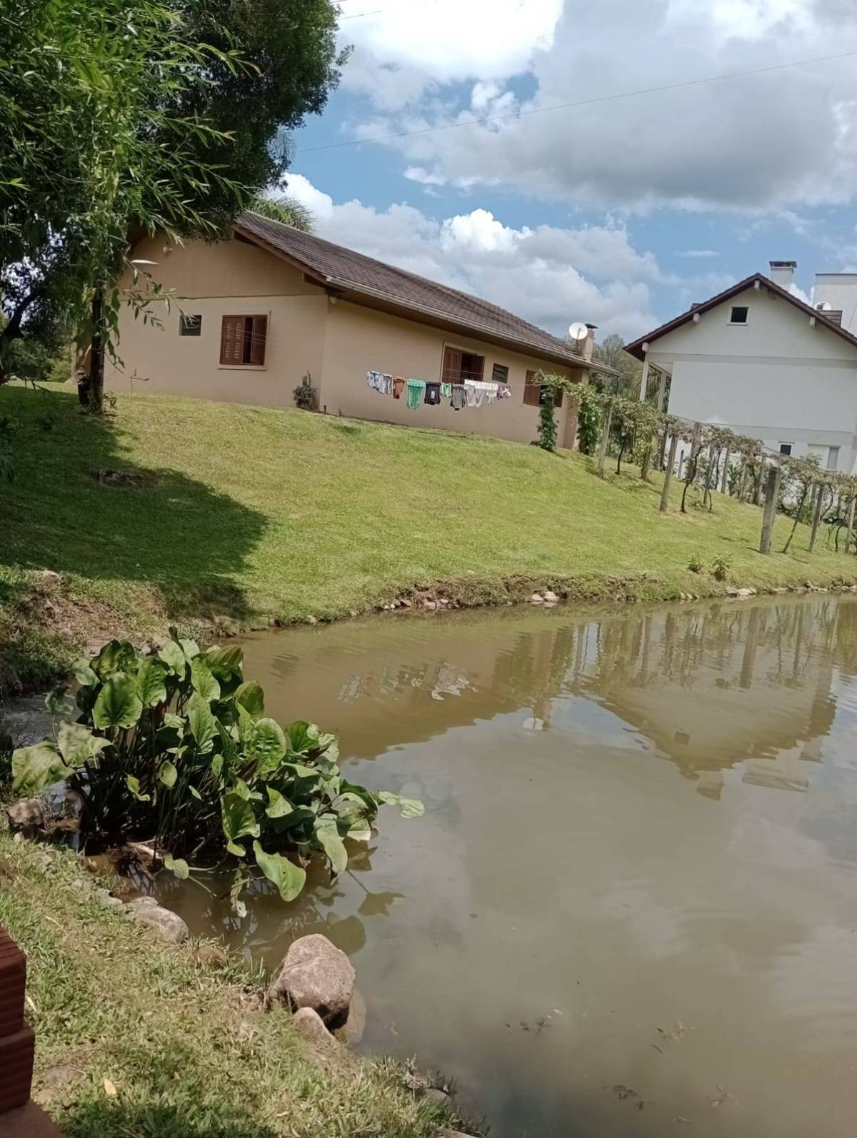 Casa material são 3 quartos ,2 banheiros, sala e cozinha individual, lavanderia tem juntos fogão campeiro e uma cozinha grande casa com 130 metros. Outra casa de madeira quarto, banheiro, sala e cozinha juntos e garagem, três açudes com peixes, carpas, jundiais, lambari, cascudos e tilapias, e outra já cavada p encher e por peixes, horta e fruteira ,terreno com 11.400 metros 52x220. Capela Santo Inácio Farroupilha 100 metros asfalto RS 122 .