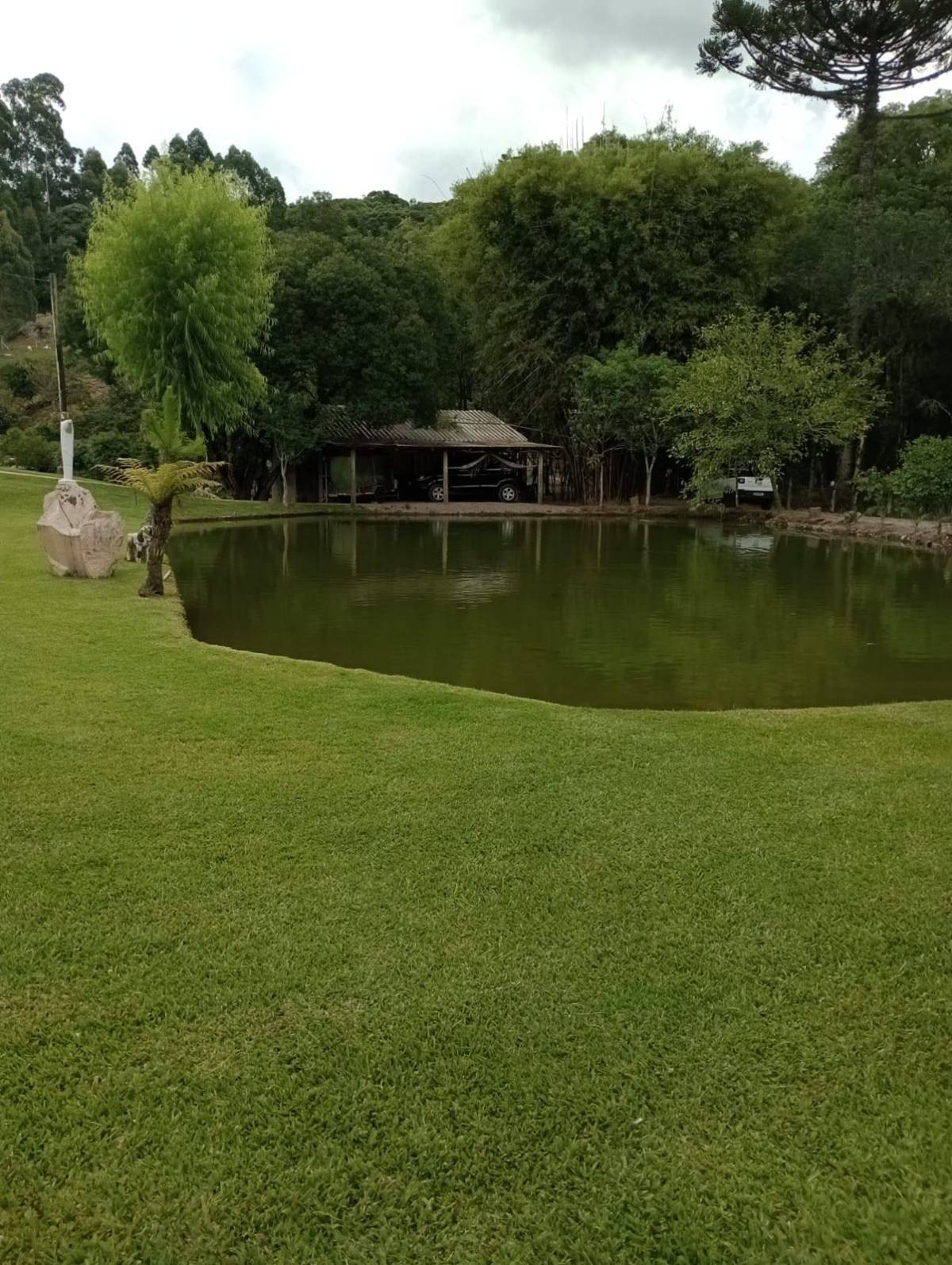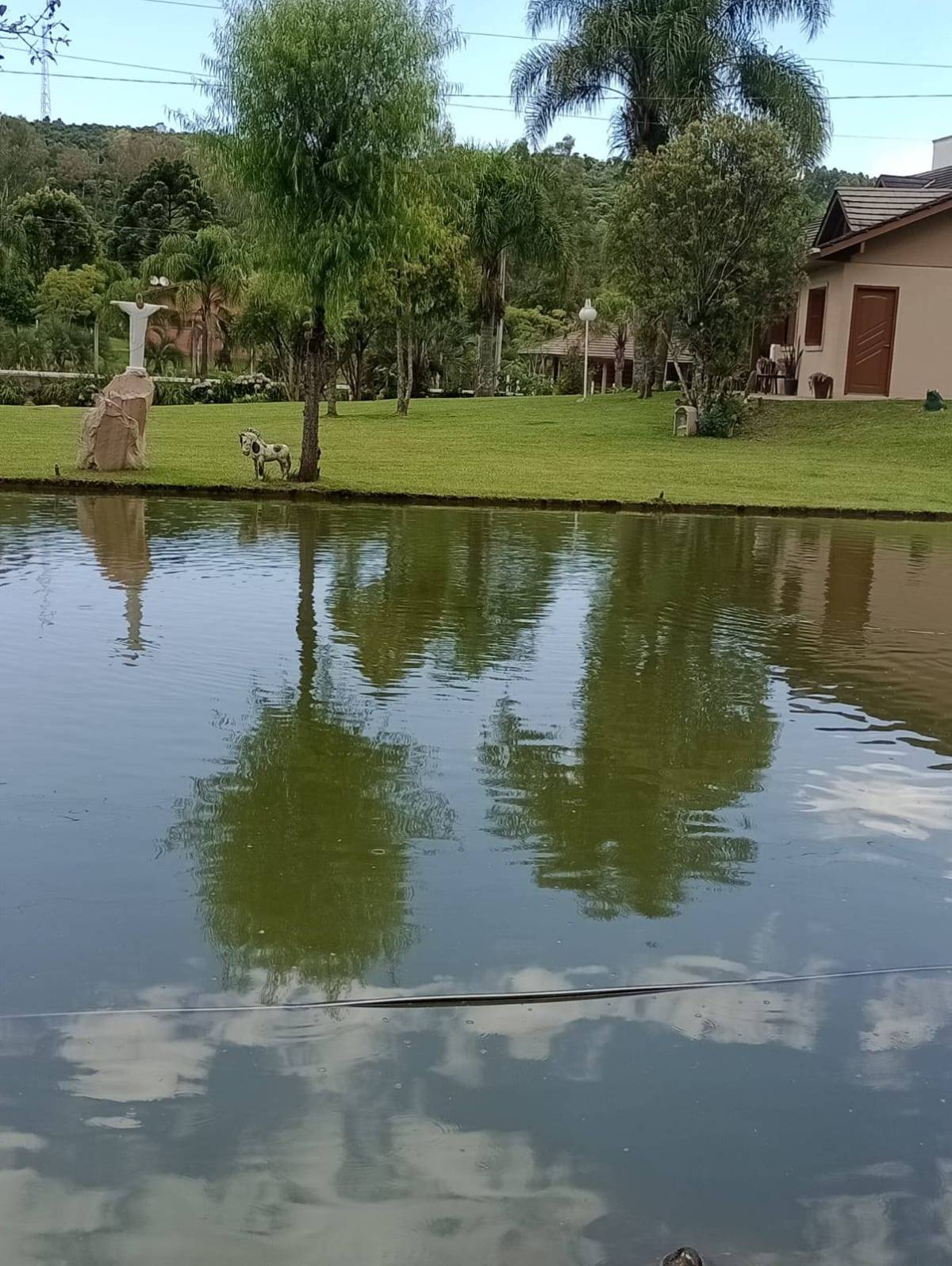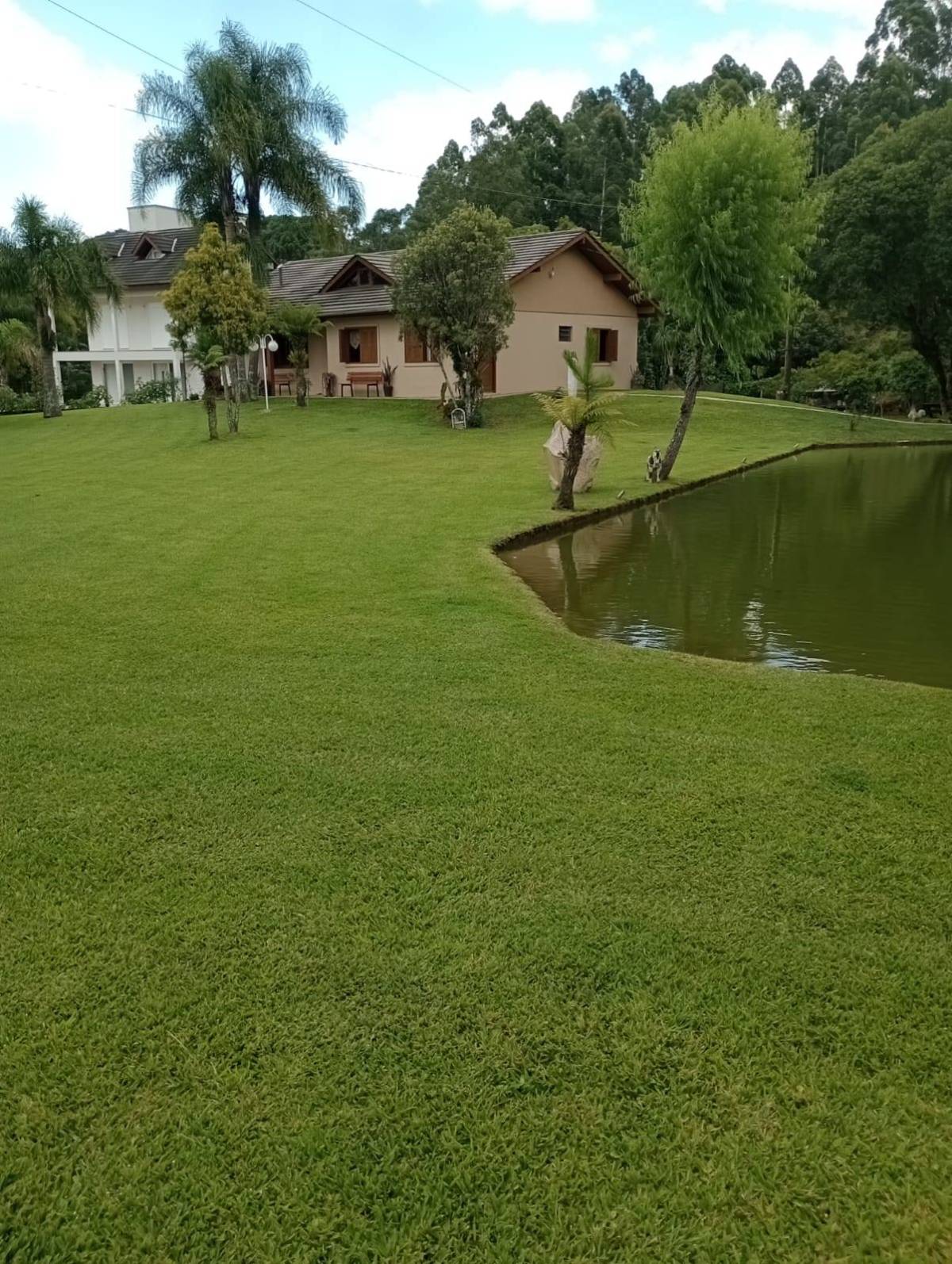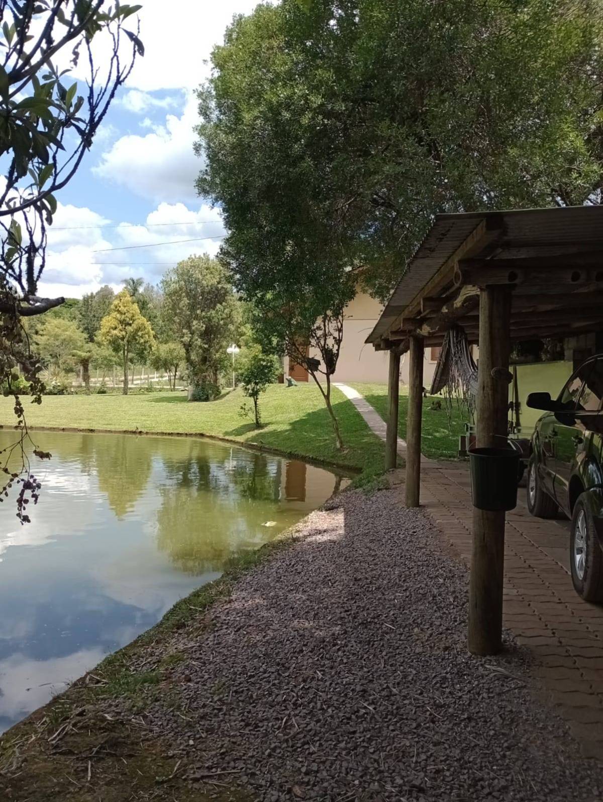 Casa material são 3 quartos ,2 banheiros, sala e cozinha individual, lavanderia tem juntos fogão campeiro e uma cozinha grande casa com 130 metros. Outra casa de madeira quarto, banheiro, sala e cozinha juntos e garagem, três açudes com peixes, carpas, jundiais, lambari, cascudos e tilapias, e outra já cavada p encher e por peixes, horta e fruteira ,terreno com 11.400 metros 52x220. Capela Santo Inácio Farroupilha 100 metros asfalto RS 122 .